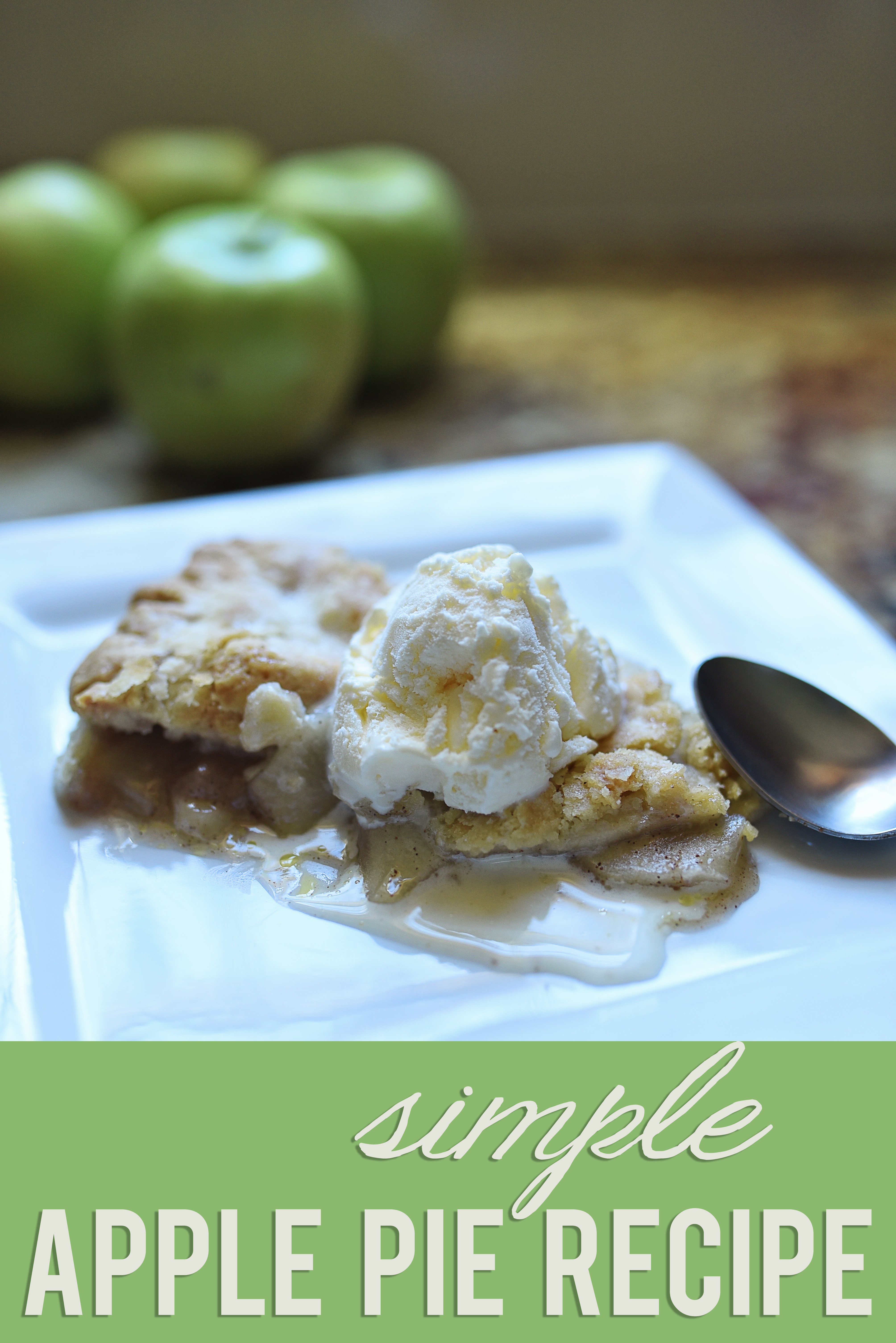 I am so excited for today’s post, I am sharing a delicious and very simple apple pie recipe. (I also have a special giveaway at the bottom of my post) My mom makes this apple pie for almost every family get together. She usually makes her own pie crust but for simplicity sake you can buy pie crusts at the store. They are good, but nothing like her homemade crust.