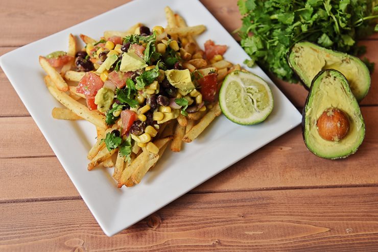 Check out the easy recipe below! This is super simple to make and will please the crowd at your next get together. You can make the salsa up ahead of time. then cook the fries and add the avocado when you are ready to serve.