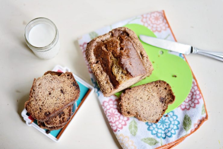 Recipe 8/52 for my 30 before 30 list. I am making and blogging about one new recipe a week. This week I made Chocolate Chip Banana Bread out of one really brown banana. Don’t you hate it when you only have one over-ripe banana left? Most of the time I would just toss it. I didn’t think that I could actually make banana bread with it, but I was wrong. I came across this recipe and it is amazing!