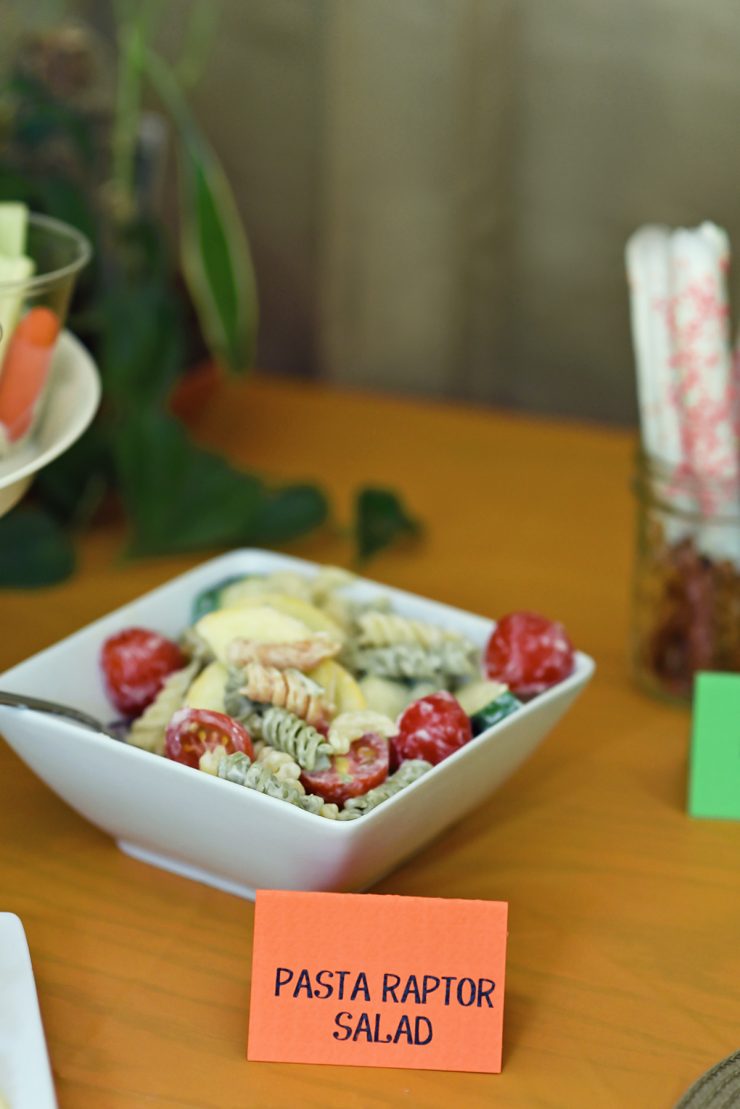 My favorite food was the pasta raptor salad. It was made with the french onion dip, squash, zucchini and tomatoes. The Kraft Bacon and Cheddar Dip would make a really good pasta salad too. Just add cooked bacon crumble and cheddar cheese right before serving.