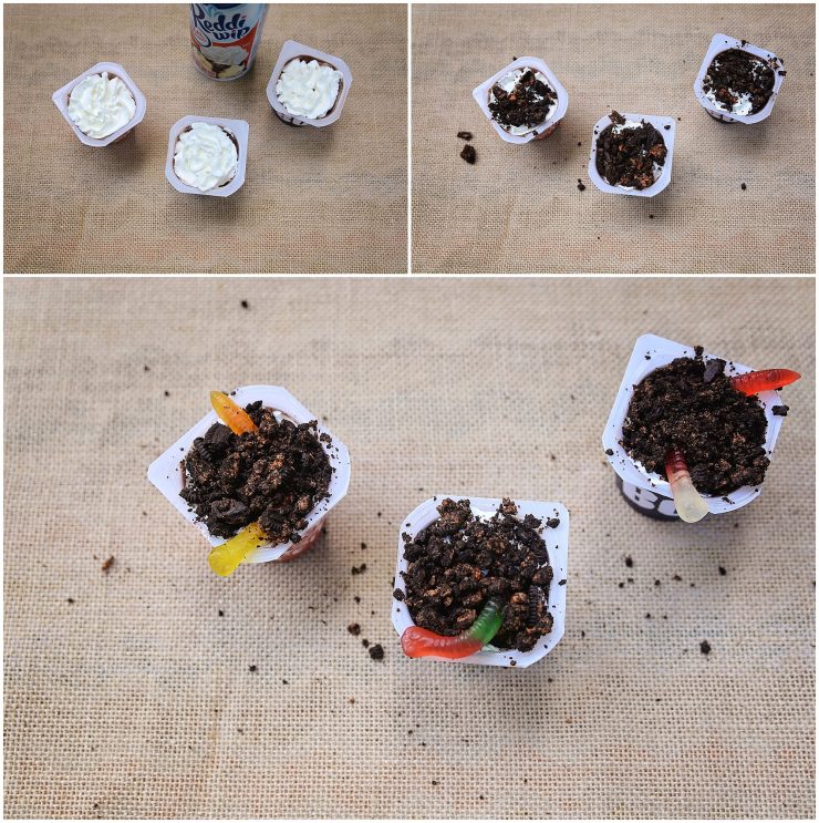 - Place 1 gummy worm in each pudding cup. Serve immediately.