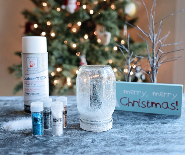 I really love the look that the texture snow paint gives the DIY snow globe. It makes it look like it is always snowing in the globe. No need to shake anything up.