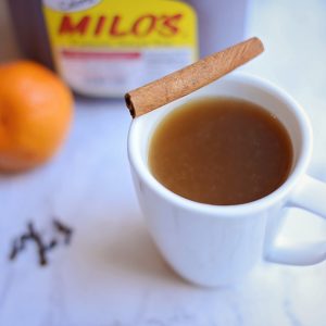 For this recipe all you need is Milo’s Tea, orange juice (fresh squeezed or bottle), cinnamon sticks, and whole cloves. It is super simple to make and perfect for your next holiday get together. You can prepare a big batch for a big gathering by multiplying the recipe.