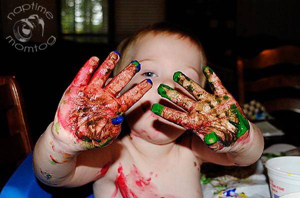 He had so much fun finger body painting. He really doesn’t like to get messy, but he sure did love coloring himself.