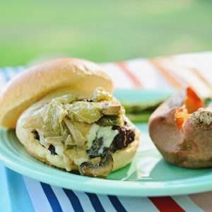 Happy Burger Month! This year I am teaming up with Kita from GirlCarnivore for an epic month of burgers plus a giveaway (more on the further down), and sharing one of my new favorite burgers, Philly-Style Cheesesteak Burger.
